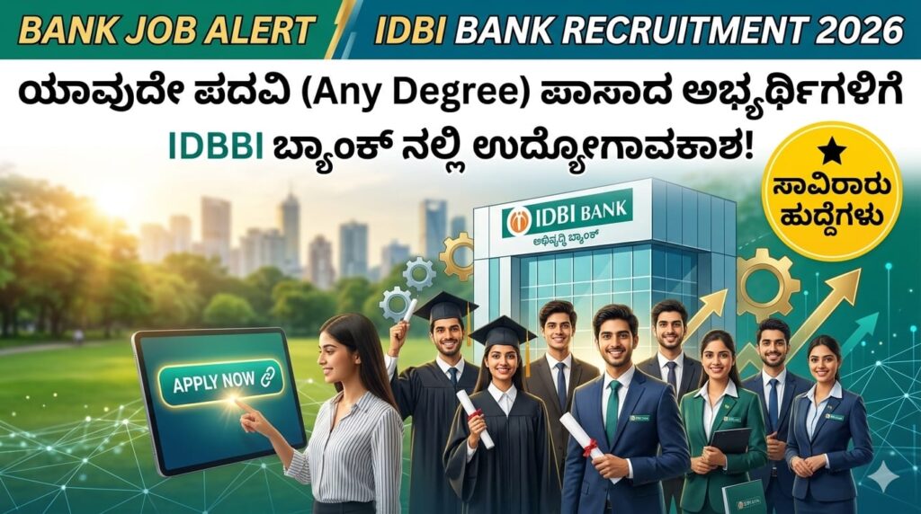 ಯಾವುದೇ ಪದವಿ ಪಾಸಾದವರಿಗೆ ಬ್ಯಾಂಕ್ ಉದ್ಯೋಗ ಅವಕಾಶ – IDBI ಬ್ಯಾಂಕ್‌ನಲ್ಲಿ ಸಾವಿರಾರು ಹುದ್ದೆಗಳ ನೇಮಕಾತಿ